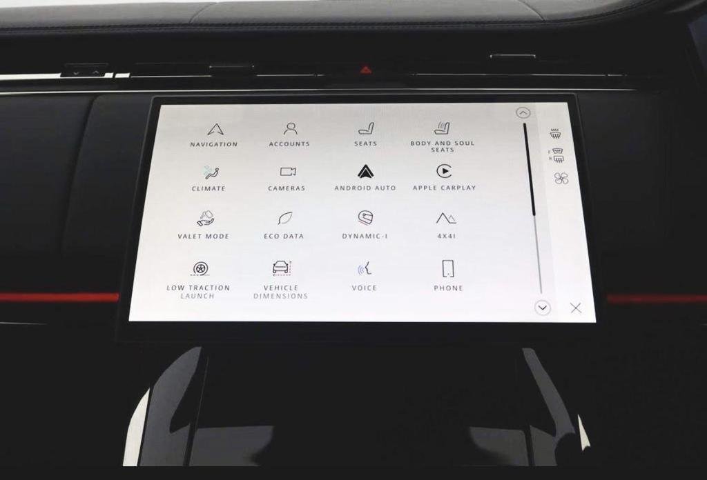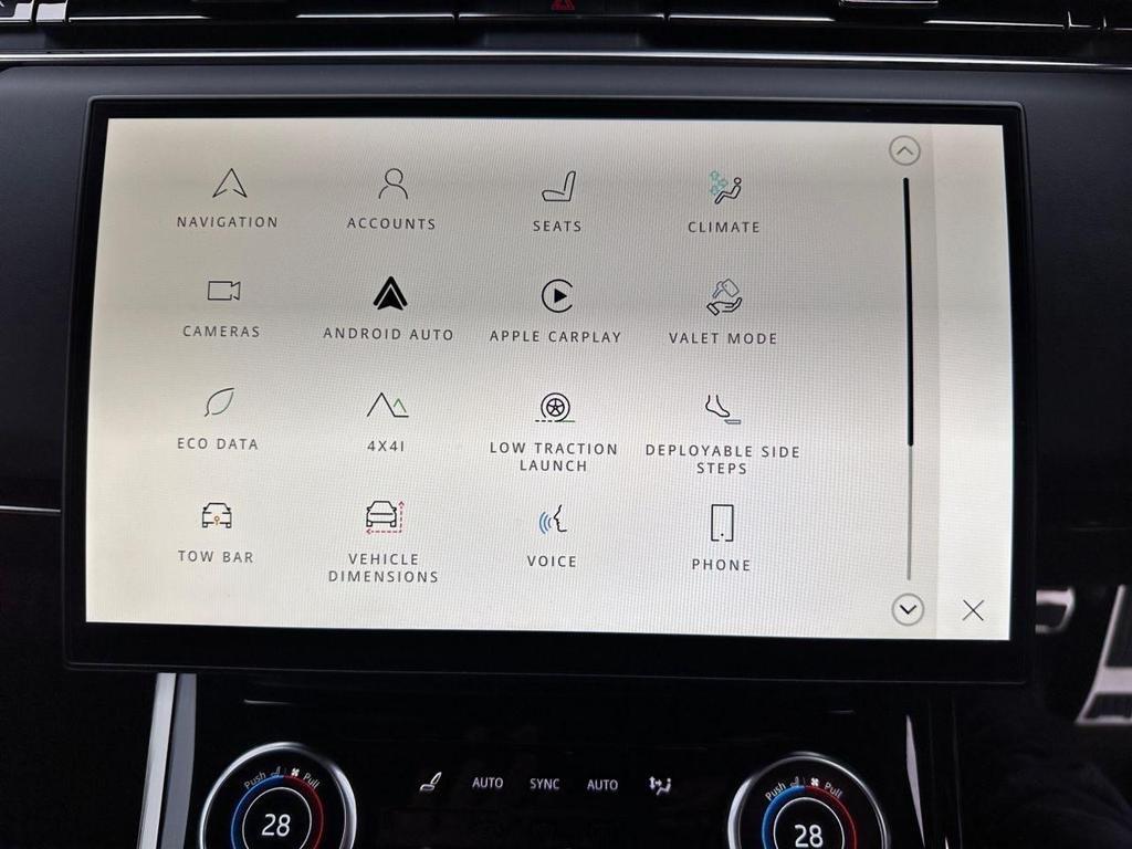 12V Power Socket 13.1in Touchscreen Android Auto Apple CarPlay Bluetooth Connectivity DAB - Digital Audio Broadcast Electrical Towing Preparation Meridian 3D Surround Sound System Online Pack with Data Plan Pivi Pro - Connected Remote Wireless Device Charging with Phone Signal Booster 3D Surround Camera Adaptive Off-Road Cruise Control Blind Spot Assist Driver Condition Response Front and Rear Parking Aid Head Up Display Park Assist Rear Collision Monitor Terrain Response 2 including Wade Programme TPMS - Tyre Pressure Monitoring System Traffic Sign Recognition and Adaptive Speed Limiter 23in Alloy Wheels - Style 5135 Black Brake Calipers Black Contrast Roof